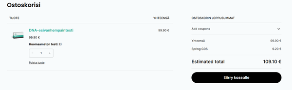 | Etnisen alkuperän DNA-testi | 99,90 € | 159,90 € |